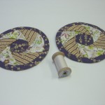 11センチの丸くカットした7枚の布で、13センチの仕上がりとなります。コースターや2枚で合わせててファスナーをつけて、